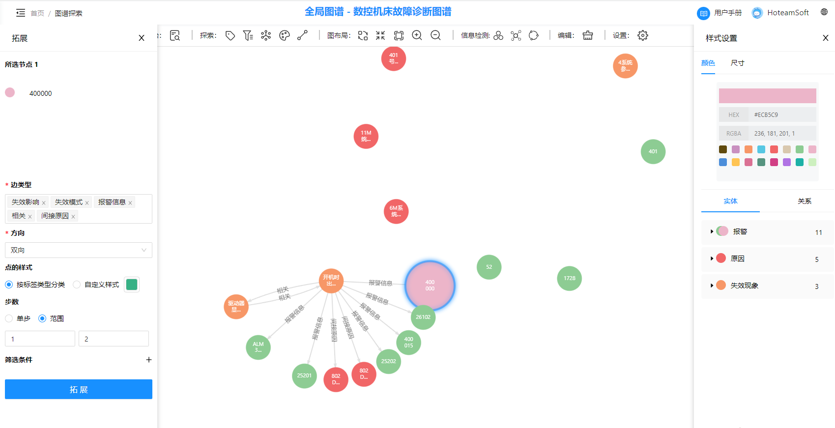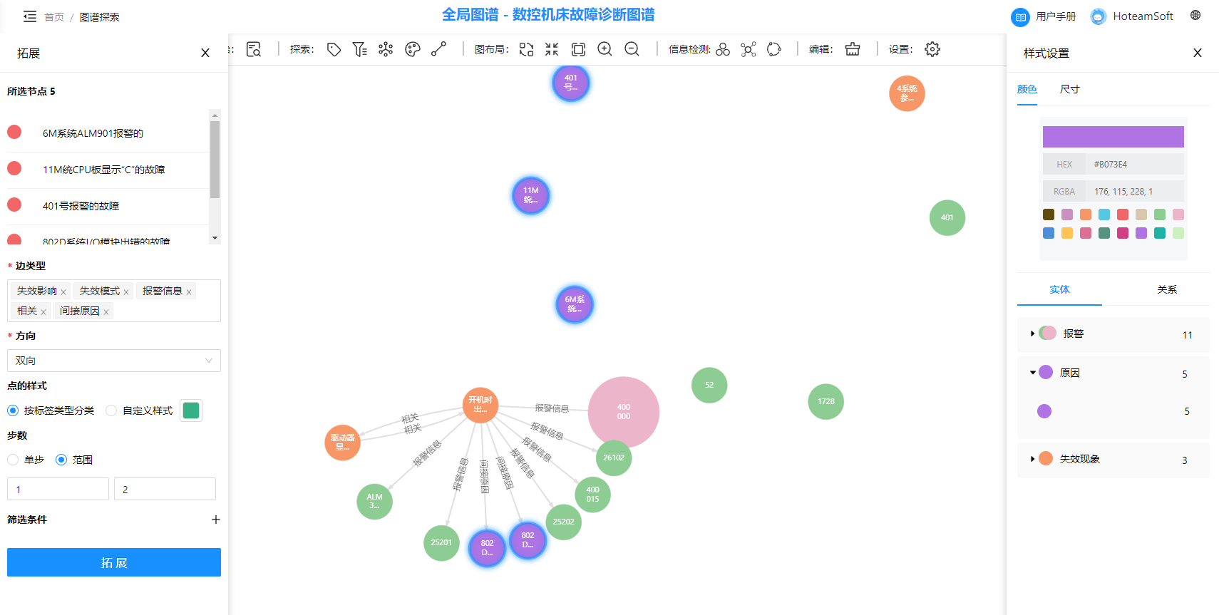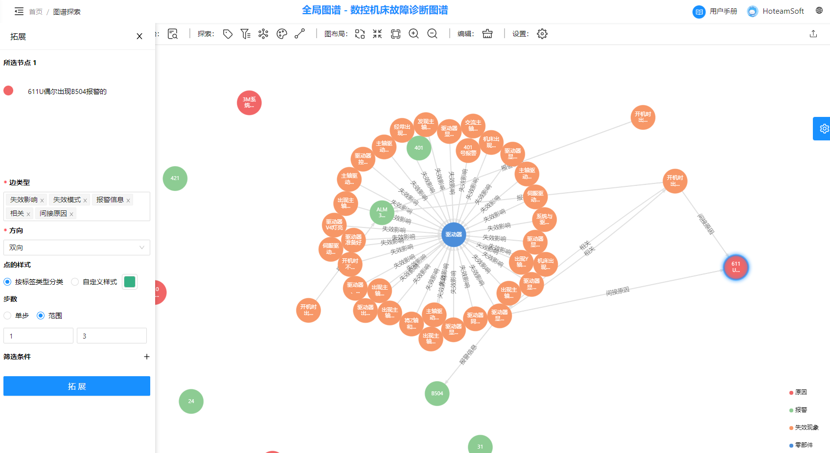 选择页面上的节点并进行自定义拓展,包括方向、步数、过滤条件等。 |