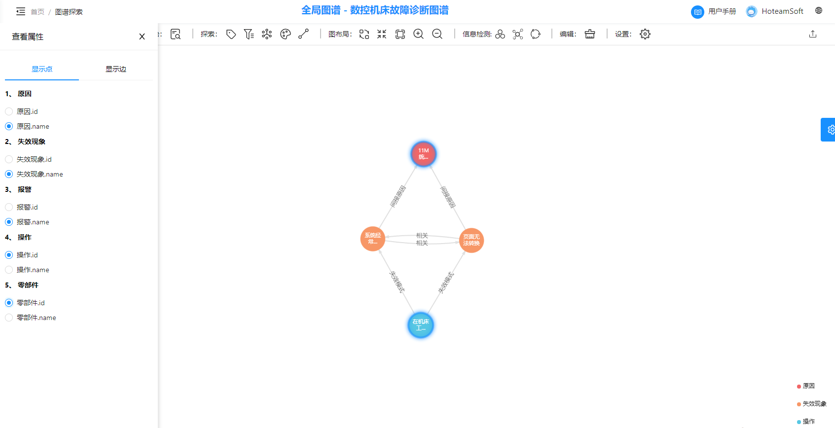 点击查看属性图标,打开查看属性窗口。用户可以选择在画布中展示或隐藏点或边的属性。