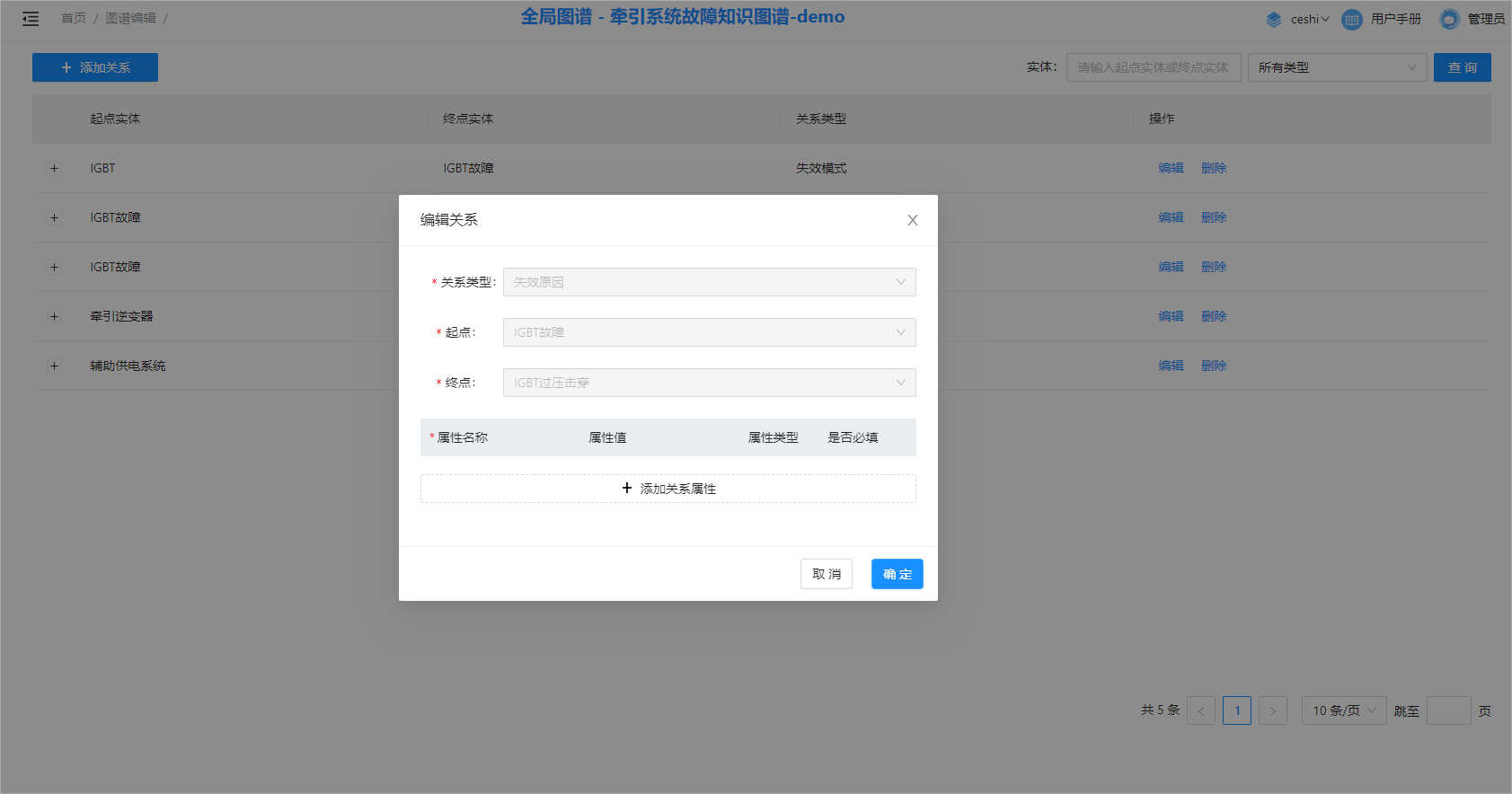 - 编辑时不可修改关系类型和起终点实体。