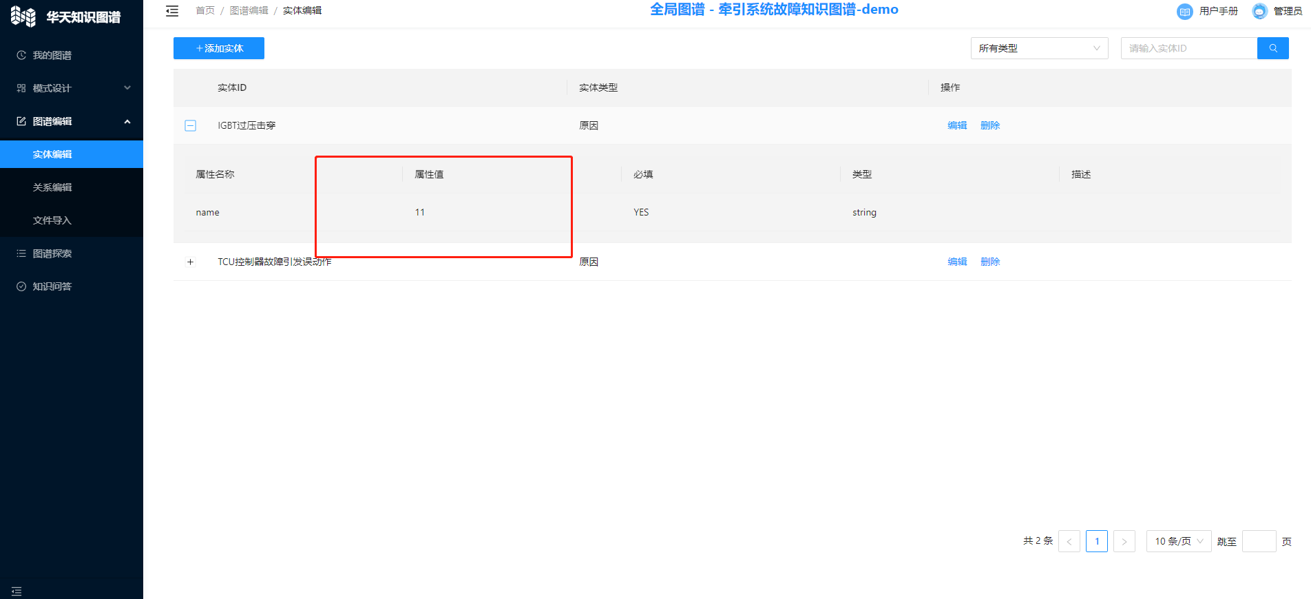 4.重复之前步骤,实现数据导入。完成后重新查看实体编辑,就可以看到属性改变了。