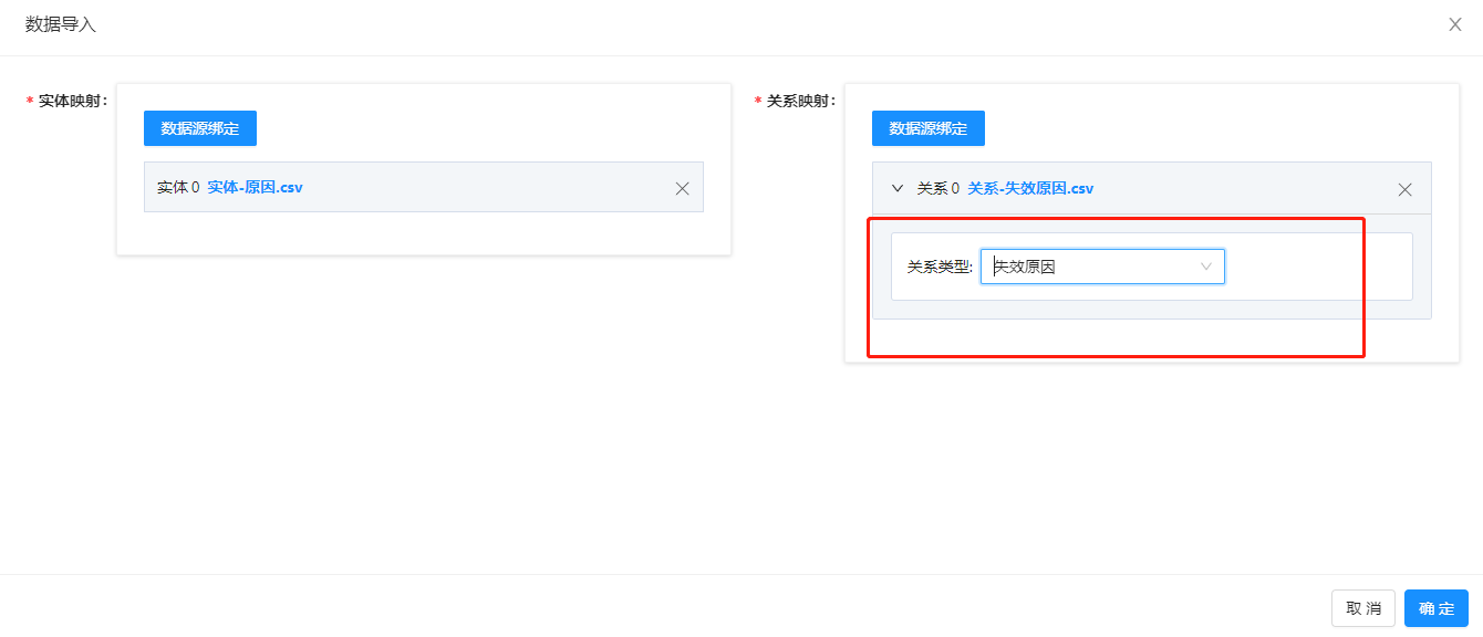 点击关系映射数据源绑定按钮,选择数据源文件。数据源文件仍然是文件上传中传入的 csv 文件。